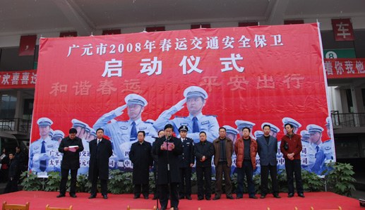 廣元市2008年春運(yùn)啟動(dòng)儀式1月23日在廣元市汽車客運(yùn)站內(nèi)舉行,市政府柳副秘書長(zhǎng)主持啟動(dòng)儀式