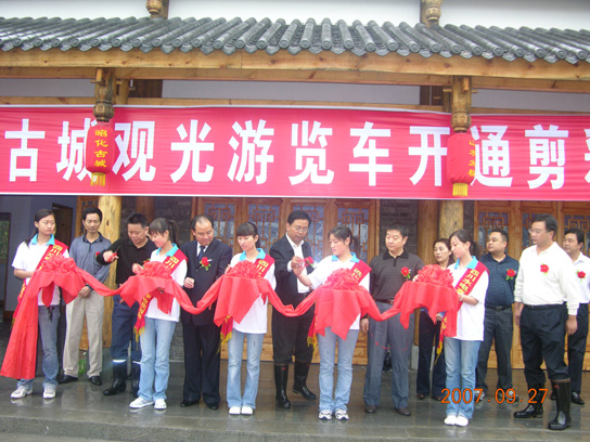 9月27日,嘉陵公司昭化古城觀光旅游車開通剪彩儀式在昭化鎮(zhèn)舉行,元壩區(qū)委書記馮安富、元壩區(qū)政協(xié)主席熊光輝、市交通局副局長(zhǎng)張益明和廣運(yùn)集團(tuán)公司董事長(zhǎng)、總經(jīng)理韓治成為觀光旅游車剪彩。