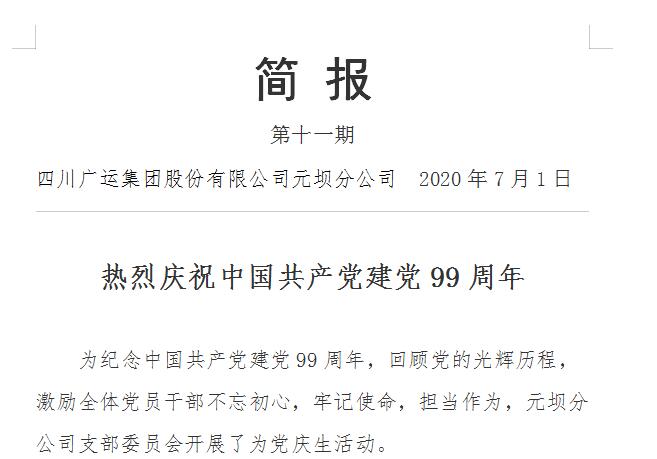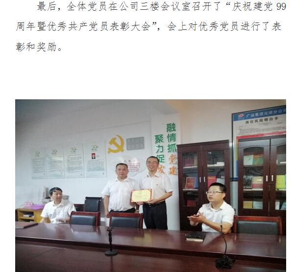 熱烈慶祝中國共產(chǎn)黨建黨99周年(廣運集團元壩公司)