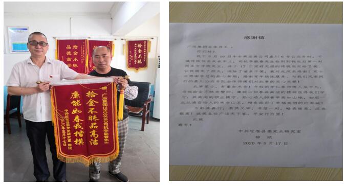 拾金不昧品高潔、完璧歸趙受贊揚(yáng)(廣運(yùn)集團(tuán)旺蒼公司)
